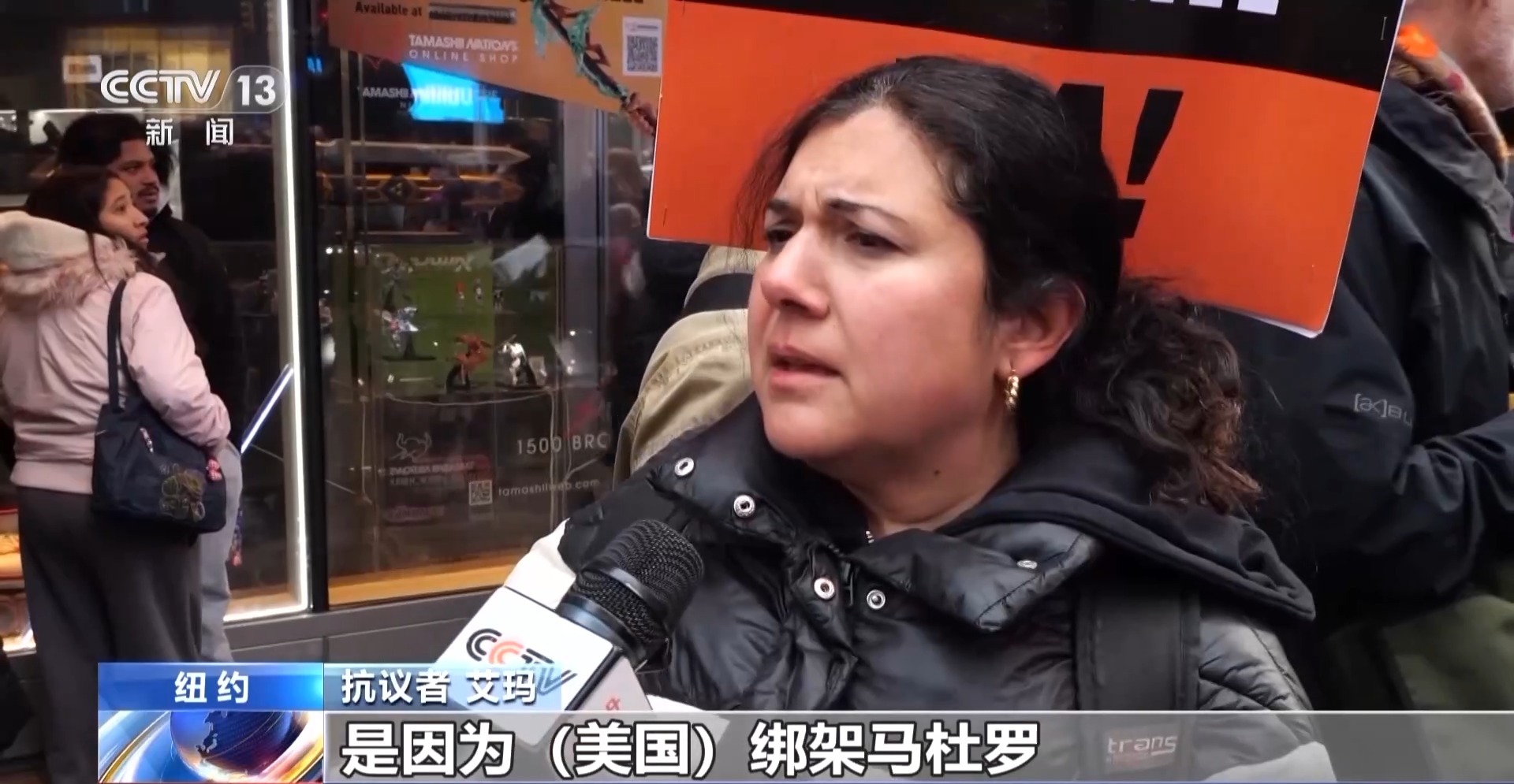 央视记者 许弢:当地时间1月3日,在美国对委内瑞拉采取军事行动后,全美多地都爆发了抗议活动。在纽约时报广场,数百人聚集在这里,反对美国对委内瑞拉采取军事干预。